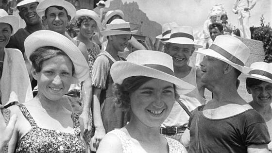 Работники зерносовхоза «Феодосийский» отдыхают в поле. Крым, 1939 год