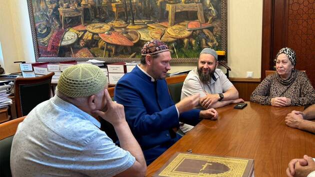«Дружба народов по-ордынски. Сразу и про историю, и про современность. И про будущее, если не будут предприняты защитные меры», — прокомментировал снимок с картиной Дюков. В следующем посте он отметил, что картина, висящая в кабинете, часто служит фоном, на котором позируют члены делегаций из региональных подразделений ДУМ.
