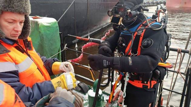Сейчас водолазы латают последнюю пробоину на левом борту судна. Идет проверка на герметичность. Ремонт внешних повреждений специалисты обещают завершить к концу дня. В ближайшее время на правом борту начнется откачка воды из шахты грузовых насосов, что позволит осмотреть состояние внутренних помещений. К данному моменту было откачано 300 кубометров пресной воды. В грузовых танках судна продолжают разогревать мазут — выгрузка топлива возможна только в подогретом состоянии. Его температура в настоящее время составляет 38 градусов. Мониторинг акватории продолжается, разлива нефтепродуктов в месте аварии не обнаружено.