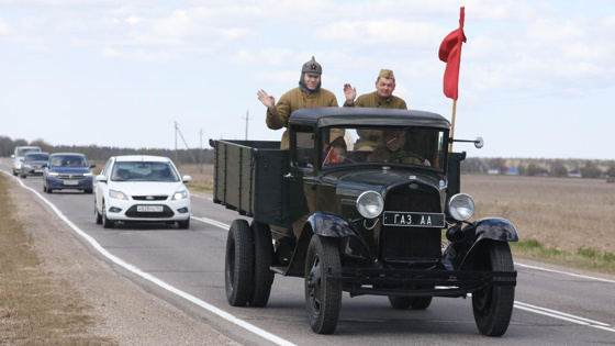 На собранной «полуторке Михаил вместе с семьей принял участие в праздновании Дня Победы. Поехали в соседнюю деревню Большое Заречье. Во время Великой Отечественной войны немцы сожгли ее, а жителей расстреляли.