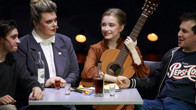 На площадке Арт-платформа в Новом Манеже состоялась премьера спектакля Театра Москвы «Компромисс», поставленного Иваном Титовым по мотивам рассказов Сергея Довлатова. Они из одноименного сборника и основаны на журналистском опыте тогда еще начинающего писателя, жившего в советской Эстонии.