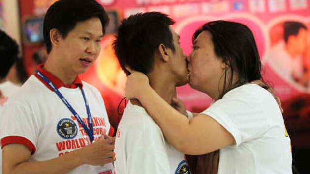 Тайская пара, установившая рекорд Гиннесса по продолжительности поцелуя, рассталась после 13 лет совместной жизни, сообщает Daily Mail. Супруги из Таиланда, Эккачай и Лаксана Тиранарат, впервые поборолись за победу в номинации "Самый долгий поцелуй" в 2011 году накануне Дня святого Валентина в Паттайе. В правилах было указано, что участники могут ходить в туалет, но при этом они должны продолжать целоваться. Чтобы утолить жажду, вспоминает 56-летний мужчина, его жене пришлось пить через соломинку, держа губы сомкнутыми, а затем женщина делилась водой с ним. Таец рассказал, что они с женой постоянно щипали друг друга, чтобы не заснуть во время соревнований. В итоге, спустя 46 часов и 24 минуты, они вышли из соревнования последними, побив рекорд Гиннеса. На следующий год супруги не смогли приехать на конкурс, и другая пара завоевала этот титул. Однако уже в 2013 году Эккачай и Лаксана вновь стали рекордсменами, продержавшись 58 часов 35 минут. Тогда они выиграли 100 тыс. батов и два бриллиантовых кольца. Но несмотря на победу в двух изнурительных соревнованиях по поцелуям, муж и жена все же расстались. Эккачай заявил, что они с Лаксаной сохранили дружеские отношения и намерены совместно воспитывать общих детей.