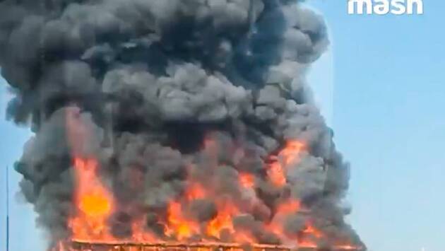 На записи видно, что пламенем охвачена вся крыша здания. Как отмечает Baza, стоимость квартир в ЖК «Роза Росса» доходит до полумиллиарда рублей.