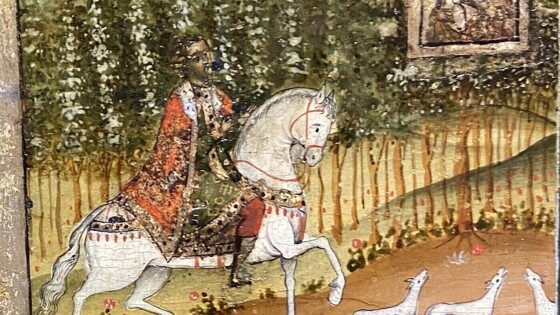 Многие из сюжетов поражают своей тонкой и искусной работой, обилием деталей — и это на небольших по размеру клеймах (на некоторых образцах прописаны каждая травинка и каждый крохотный цветок!). Но главное: изображаемое вполне соотносится с обычной человеческой жизнью, хотя изображаемые события происходили сотни лет назад. Рассматриваем створки складня «Благовещение»; «Богоматерь Живоносный источник»; «Сказание о явлении и чудесах иконы Федоровской Божией Матери» (XVIII век) и встречаем там довольно близкие нам бытовые элементы. Например, вместе с князем Василием на охоту отправились милые белые собачки. Таких умилительных открытий здесь можно сделать немало. Еще один трогательный сюжет с лучшими друзьями человека обнаружим на иконе, повествующей житие священномученика Власия Севастийского (XV–XVI вв.) — один из самых ранних памятников на выставке. Власий считается покровителем болящих, помогает исцелиться от недуга, помогает он не только людям, но и животным. Об этом свидетельствует один из сюжетов на иконе, где Власий исцеляет в пещере диких зверей, судя по изображению, тоже собак. И снова картина из обычной, близкой нам жизни: мало кто пройдет мимо, если к нему за помощью придут братья наши меньшие. Животные часто появляются на изображениях, потому что они — помощники последователей Христа. Помимо собак часто можно увидеть лошадей. Нам удалось обнаружить среди героев житийной иконы помимо вышеупомянутого льва еще ослика, верблюда.