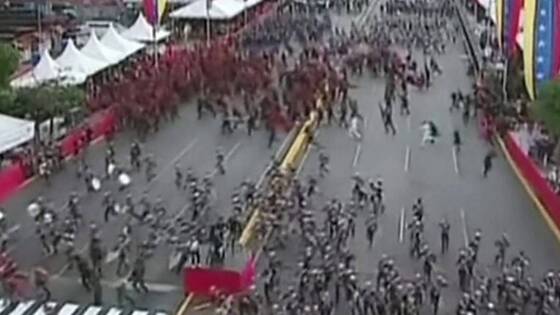 После взрыва телохранители защитили Мадуро баллистическими щитами, а трансляция мероприятия по телевидению была прервана. Один из дронов попал в жилой квартал, где в результате взрыва была ранена девушка. Власти страны возложили ответственность за произошедшее на власти соседней Колумбии, включая президента Хуана Мануэля Сантоса, а также на венесуэльскую оппозицию. Всего было задержано восемь человек.