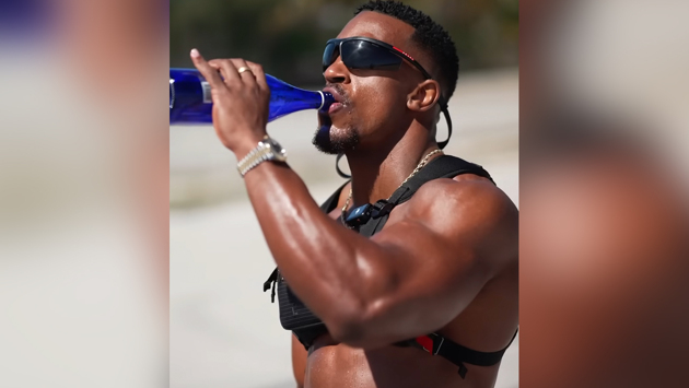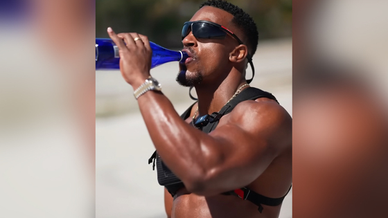 Весь ролик в кадре мелькает одна и та же синяя бутылка воды — очевидно, завирусившееся видео просто проспонсировано производителем.