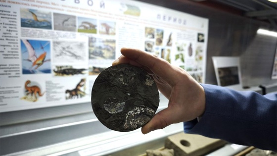 - Идя вдоль экспозиции, от стойки к стойке, мы словно "проживаем" миллионы лет. Керн показывает, что происходило с Землей в тот или иной период, какие геологические потрясения ее настигали. Вот видите, песчаник, значит, тогда тут было море. А на этом образце видны прожилки углистого детрита - корни растений. Значит, было болото. Это все Триасовый период. Справа от него - Юрский. Как много угля! Это говорит о большом количестве органики. Прямо рассвет: папоротники, планктон. Чем ближе к поверхности земли, тем порода не такая цементированная и можно разглядеть остатки фауны, - достает из секции образцы экскурсовод.