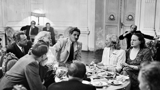 На фото (слева направо): кинорежиссер Григорий Александров, актриса Валентина Серова, писатель Константин Симонов и актрисы Любовь Орлова и Татьяна Окуневская. Москва, 1945 год