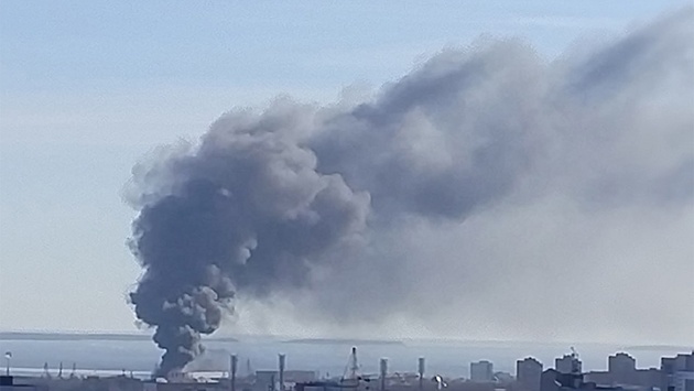 В Петрозаводске случился сильный пожар в одном из производственных подразделений Онежского судостроительного завода. Клубы дыма видны даже из центральных районов города.