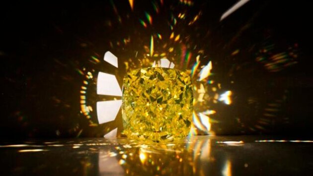 Вес бриллианта редкого цвета Vivid Yellow составляет более 100 карат. Драгоценность получила название "Новое Солнце" в честь алмаза "Рассвет" весом более 200 карат, который также был добыт "Алросой".