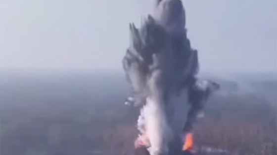 Дрон снял эпичный взрыв после удара установки ВС РФ "Метеорит"