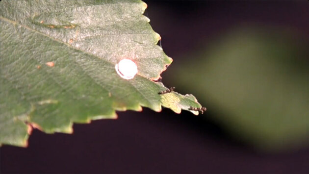 Двухполосая серпокрылка Falcaria bilineata откладывает яйца на ветки и листья берез по всей Северной Америке. Когда яйца вылупляются, бородавчатые березовые гусеницы обычно ползут к кончикам ближайших листьев. Длина новорожденных гусениц — не более 2 миллиметров, что делает их весьма уязвимыми. Но они готовы дать отпор — ученые давно заметили, как эти крошечные существа неистово вибрируют на листочках, демонстрируя, по всей видимости, территориальное поведение.