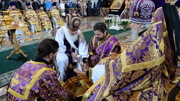 Великий четверг - день напряженных богослужений. Кроме утренней Божественной литургии и долгой вечерней службы, когда во время чтения 12-ти евангельских отрывков верующие стоят с горящими свечами, именно в Великий четверг раз в год в Церкви происходит уникальных событие - чин, то есть специальное последование, омовения ног.