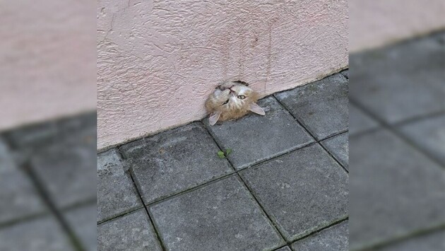 Животное застряло в узком сливном отверстии для дождевой воды и не могло выбраться самостоятельно. Новороссийцы позвонили в службу спасения.