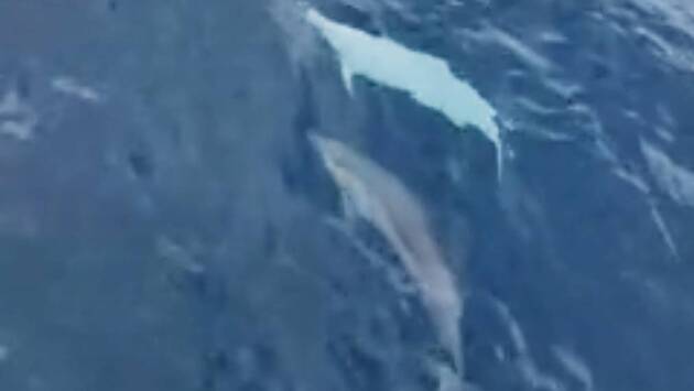 Редкую особь снял на видео гид туристической группы Линь Чэн-Ляо. Он признался, что это был первый раз за последние десять лет, когда он увидел дельфина-альбиноса. На видео белый представитель плывет в стае дельфинов обычного окраса. Судя по небольшим размерам дельфина, это еще подросток.