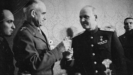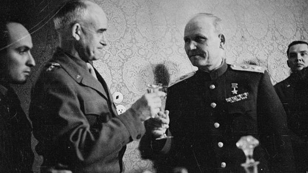 «Русская водка и бесконечные тосты» Как русские и американцы вместе отмечали победу над Гитлером: уникальные кадры