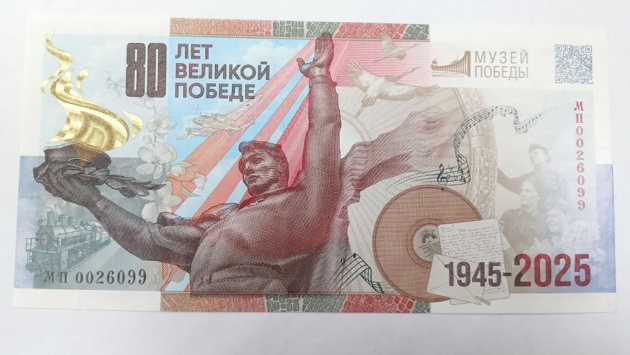 Пермская печатная фабрика Гознак вместе с Музеем Победы на Поклонной горе выпустила банкноту, посвященную 80-летию Победы в Великой Отечественной войне.