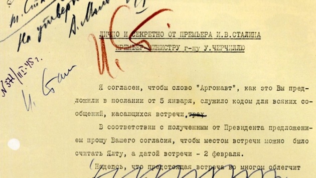 Андрей Сорокин: Да, Генералиссимус направил письмо Черчиллю с предложением места и даты проведения очередной конференции союзников - Ялта, 2 февраля - и согласился с предложенным кодовым названием "Аргонавт". Крымская, или Ялтинская, конференция союзных держав, представлять которые будут их лидеры, состоялась с 4 по 11 февраля в Ливадийском дворце под Ялтой.