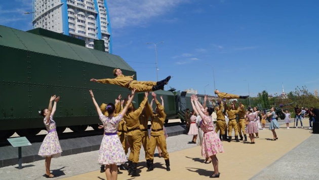 На набережной Волгограда открыли мемориал, представляющий собой бронепоезд, который участвовал в Сталинградской битве.
