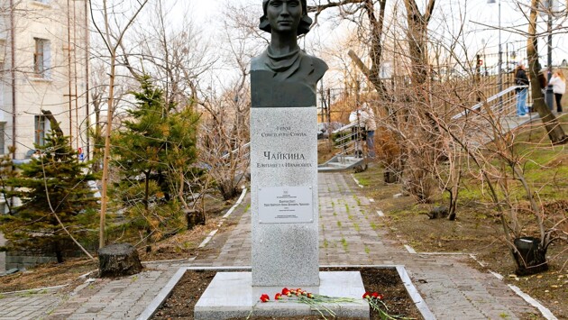 О героях былых времен: ожившие памятники Владивостока. Спецпроект DEITA.RU к 80-летию Победы в Великой Отечественной войне. Часть 13. Бюст Героя Советского Союза Е. Чайкиной.