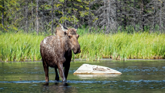 Фотоловушки зафиксировали маму-лосиху вместе с детенышем