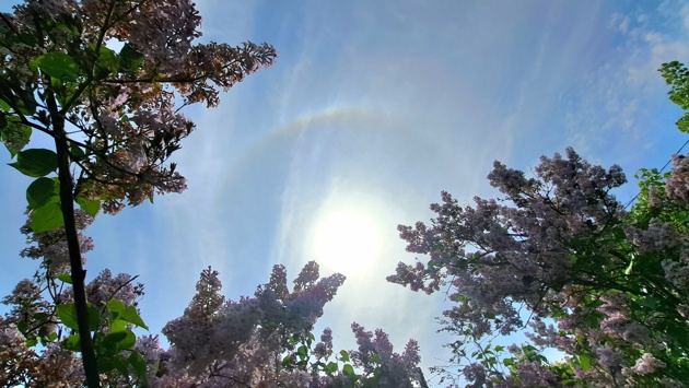 Солнечное гало появилось в небе над Нижним Новгородом 18 мая. Наблюдать это природное явление также могли жители и других городов Нижегородской области, рассказали в планетарии им. Г.М. Гречко в соцсетях. Солнечное гало — это оптическое явление, возникающее при преломлении света в шестигранных кристаллах льда в высоких перистых облаках. «Кольцо вокруг Солнца — это лишь одно из проявлений гало. На самом деле гало может состоять из множества различных компонентов: всевозможных дуг, радужных пятен, полос и даже крестов», — пояснили в планетарии. В этот раз нижегородцы могли наблюдать гало в виде кольца радиусом 22 градуса, при этом верхняя и нижняя касательные дуги весьма ярко выделялись на фоне голубого неба и были похожи на маленькие радуги. Ранее на сайте pravda-nn.ru сообщалось, что нижегородский ученый Алексей Киселев рассказал, как наблюдать за небесными телами и где искать их следы в Нижегородской области.