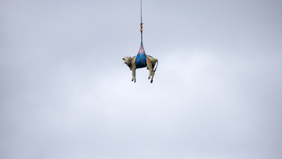 Корову Лони из швейцарской деревни эвакуировали на вертолете