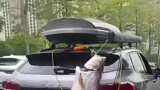 SCMP: в Китае оштрафовали рыбака, прикрепившего рыбу к автомобилю