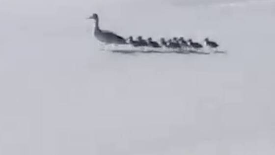 Утка с девятью утятами благополучно пересекли проезжую часть, несмотря на дорожный трафик. Машины притормаживали перед семейством, чтобы не пугать птиц. После удачного преодоления дороги утки, вероятно, отправились к ближайшему водоему. Эпизод попал на видео очевидца.