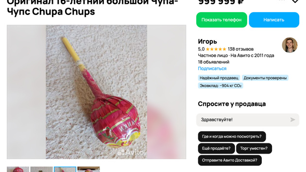 «Дурдом!» - сразу же прокомментировал новость один из юзеров. Но факт остается фактом. Так, недавно на сайте объявлений Авито появилось необычное предложение. Пользователь под ником «Марина — милые вещи с историей» выставил на продажу картонную упаковку от Биг Мака за 5 000 000 рублей. В описании товара девушка называет лот «настоящим артефактом из мира фастфуда» и подчеркивает его уникальность. А советский эспандер с редким браком выставлен на продажу за семь миллиардов рублей