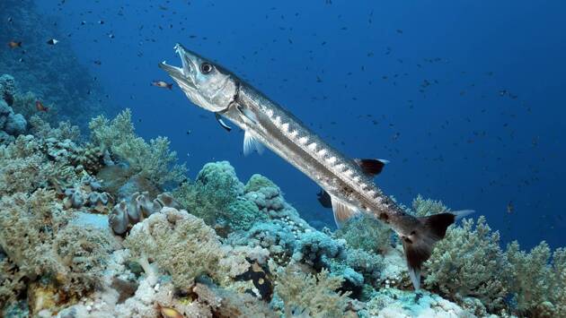 Барракуды — крупные хищные рыбы с мощными челюстями. Они могут достигать в длину двух метров и набирать вес до 50 килограммов. Охотясь, они нападают на свою жертву на большой скорости, за что этих рыб прозвали живыми торпедами.