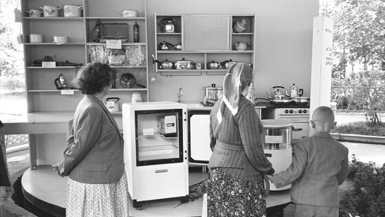 В июне 1959 года в Нью-Йорке прошла выставка товаров СССР. А в июле 1959 года Советский Союз получил возможность подивиться американским товарам. Это оказалось культурной бомбой. Люди часами простаивали в очереди, чтобы попасть на выставку.