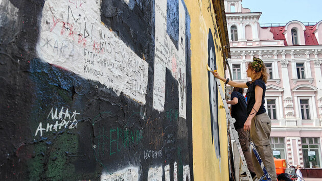 В начале июня стену полностью закрасили, чтобы отреставрировать.