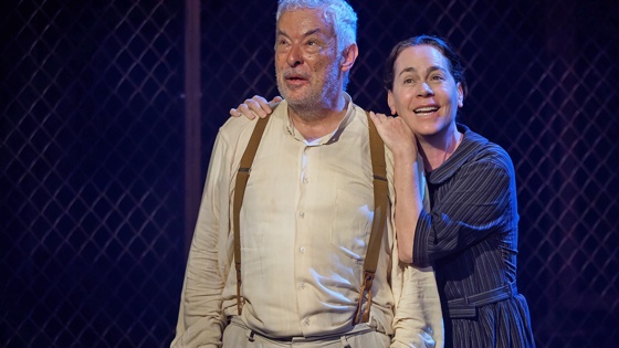 Споря о судьбе птицы, супруги то притягиваются к центру комнаты, то расходятся по углам этого нищенски-голого пространства, где продано все, что можно было продать, а остатки вещей - настенные часы и зонты - будто висят в воздухе.
