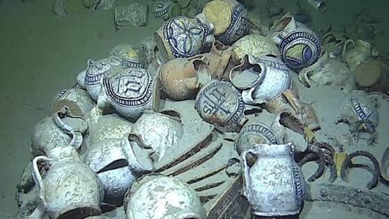 Трюмы оказались набиты керамической посудой и металлическими прутами. Кроме того, среди обломков нашли две кастрюли, шесть пушек и якоря. Археологи отмечают хорошую сохранность грузов.