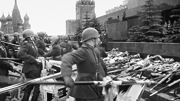 Одним из самых ярких и неожиданных моментов парада стало появление фашистских знамен. Презрительно опустив их к земле, в специальных перчатках, чтобы не касаться древка голой рукой, красноармейцы проносили их через площадь и бросали перед Мавзолеем.