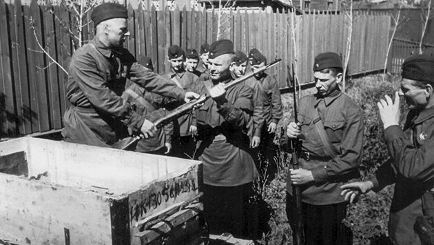 22 июня – День памяти и скорби. В этот день жители Курской области, как и всей России, вспоминали трагические события 1941 года, когда началась Великая Отечественная война. Публикуем очерк, в котором рассказывается о первых днях войны в военном комиссариате Медвенского района. «Напряжённая ночь для политрука Пантелеймона Ивановича Фомина (на фото внизу) тянулась страшно медленно, нервничал, ходил вокруг стола своего кабинета, изредка выглядывал в окно, бросая взгляд на ночную Медвенку. Он получал разноречивую информацию о происходящих событиях на границе любимой им Советской Родины. Все известные ему меры, принятые ранее по сдерживанию фашистской агрессии, подавали надежду, а недавняя статья в газете «Правда» вовсе опровергала слухи о близости войны между СССР и Германией, вселяла уверенность в мирную государственную политику. Но сама атмосфера последних июньских дней была буквально пронизана предчувствием войны. Он, конечно, не строил иллюзий по поводу договоров с Германией в отношении международной обстановки, она в настоящий момент напряжена до крайностей. И не случайно… А сосед наш ненадёжный, несмотря на то, что мы с ним имеем договор… Так размышлял Пантелеймон Иванович, не делая поспешных выводов, стараясь принять для себя хоть какое-нибудь осмысленное решение. С чувством неотступающей тревоги дождался утра, так и не сомкнув глаз, связался с первым секретарём Медвенского РК ВКП(б) Саенко и председателем райсовета Абросимовым. Договорились о встрече, на которую пришли уже в потрясённом состоянии, прослушав по радио официальное обращение министра иностранных дел Вячеслава Молотова, который сообщил о нападении Германии на СССР и объявил о начале Отечественной войны. 22 июня в 17:55 в Медвенский РВК поступила телеграмма с оповещением о мобилизации. Наряды по призыву необходимо было выполнить до 9 июля. Фронт стремительно приближался к границам области, части Красной Армии отступали, вместе с ними места военных действий покидали мирные жители, эвакуировались лица специального назначения вместе с семьями и имуществом. Бойцы и командиры Красной Армии, с начала военных действий потерявшие свои части, совершали обход уже оккупированной врагом территории в надежде присоединиться к действующим частям армии. Верные сведения о настоящем положении дел порой подменялись паническими настроениям. Регулярные бомбёжки тыловых территорий нарушали связь, затрудняли организацию обеспечения нашей армии и создавали сложности в принятии мер и решений по оказанию сопротивления врагу. Все людские и материальные средства района были направлены на обеспечение призыва и поставок по мобилизации. Заведующим военным отделом РК ВКП(б) был назначен Фёдор Матвеевич Никульников. В качестве заместителя начальника РВК по сборному пункту для проведения партийно-политической работы среди военнообязанных районному военкомату из числа партийного актива был направлен Подушкин Ефим Маркович, по сдаточному пункту лошадей и обоза – Кравцев Иосиф Егорович, по сдаточному пункту мехтранспорта – Руднев Владимир Васильевич. 24 июня Совет Народных Комиссаров СССР принял два постановления: 1) «Об охране предприятий и учреждений и создании истребительных батальонов»; 2) «О мероприятиях по борьбе с парашютными десантами, диверсантами противника в при