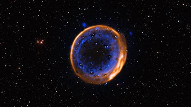 Ученые исследовали останки сверхновой SNR 0509-67.5 с помощью Очень большого телескопа и обнаружили следы кальция. Ранее исследователи предсказывали, что если сверхновая взрывается дважды, то после взрыва будут видны следы кальция. Это первое доказательство, что белые карлики могут взрываться дважды перед тем, как стать сверхновой. Работа опубликована в журнале Nature Astronomy.Некоторые белые карлики в двойных системах могут поглощать вещество у звезды-«соседки». В какой-то момент масса белого карлика становится критической, после чего он взрывается. В результате образуется сверхновая типа Iа. Ранее ученые считали, что взрыв всегда происходит один раз, хотя с точки зрения физики некоторые сверхновые типа Iа могли бы взорваться дважды, причем первый взрыв должен случаться до того, как звезда достигла критической массы.Недавно группа исследователей предсказала, что такое явление создаст отличительный узор из светящихся остатков сверхновой. По их расчетам, он должен быть виден еще длительное время после взрыва. Остатки такой сверхновой, согласно расчетам ученых, должны содержать слои кальция.Новое изображение, полученное с помощью Очень большого телескопа Европейской южной обсерватории, доказывает, что некоторые сверхновые действительно могут взрываться дважды. Именно это случилось с SNR 0509-67.5. Специалисты обнаружили слои кальция — на изображении они выделяются синим цветом. Ученые считают, что это происходит из-за аккреции гелия, который накапливается вокруг белого карлика и может воспламениться. Ударная волна распространяется вокруг звезды и внутрь нее, что и приводит ко второму взрыву — сверхновой.