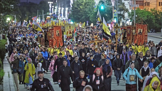 В Екатеринбурге в ночь с 16 на 17 июля десятки тысяч верующих приняли участие в Большом крестном ходе - главном событии "Царских дней", череды мероприятий, посвященных памяти последнего русского императора Николая II и его семьи.