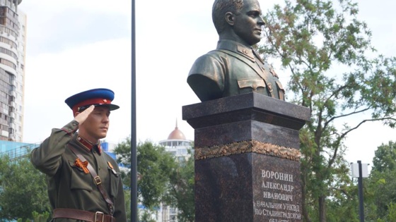 В Волгограде состоялась церемония открытия бюста начальника управления НКВД по Сталинградской области с 1938 по 1944 годы Александра Воронина. Скульптура расположена в городском парке.