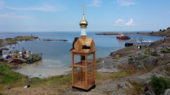 На скалистом участке необитаемого острова Соммерс в Финском заливе прозвучал колокол. Здесь в память о погибших в годы Великой Отечественной войны моряках-десантниках возвели звонницу.