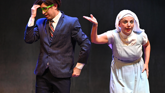 А что же "грешница", невеста Джульетта? Актриса Марилин Петито играет девушку, ведущую прямые эфиры в своем блоге даже во время родов. В том же стремительном ритме она превращается в миниатюрного, но отважного Эскала - этот шекспировский персонаж в спектакле не старик, а этакий зумер-стажер в гигантском пиджаке: он неуклюже, но твердо противостоит "начальнику" Анджело (у Шекспира в этой сцене участвует Судья, но в спектакле две эти роли "соединяются" в одну). Она же исполняет роль Марианы - невесты лицемера Анджело, которая в конце концов и помогает его разоблачить.