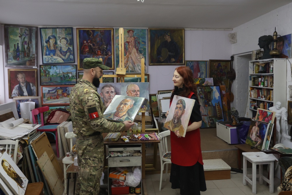 - Я вижу уникальное спокойствие, мужество, уверенность. Думаю, что он тот человек, который проявляет свои лучшие качества в сложных ситуациях, - говорит живописец, работая кистью. Скоро портрет будет готов. Что же там получается?