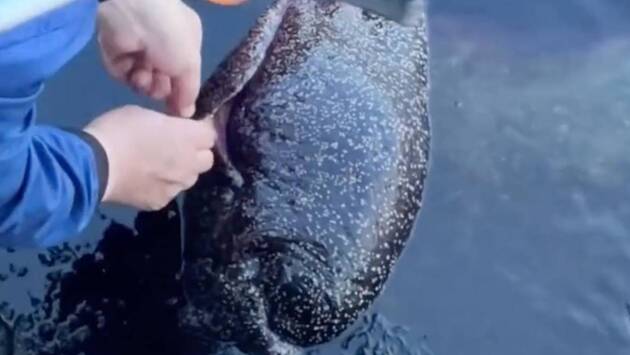 Животное отпустили в море. В соцсетях распространена версия, что это был так называемый морской заяц — морской моллюск, живущий на мелководье и питающийся водорослями. Самые крупные представители этого семейства вырастают до метра в длину и весят до 14 килограммов.