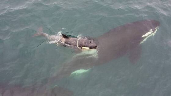 Малыша косатки, застрявшего в пластиковом кольце, пытаются спасти на Камчатке