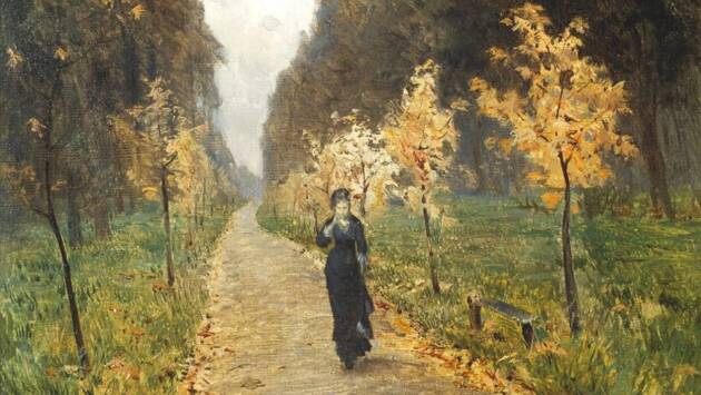«Осенний день. Сокольники» — единственный шедевр Левитана, где изображена человеческая фигура. Вспомните «Золотую осень», «Март», «Над вечным покоем» или «Тихую обитель» — люди там точно были бы лишними. Таким же безлюдным был первоначально и «Осенний день». Поместить в него стройную девушку в черном посоветовал тот же Николай Чехов — и сам же ее написал, как Савицкий написал Шишкину медведей в утреннем сосновом лесу. Левитан поначалу противился, но в итоге сдался.