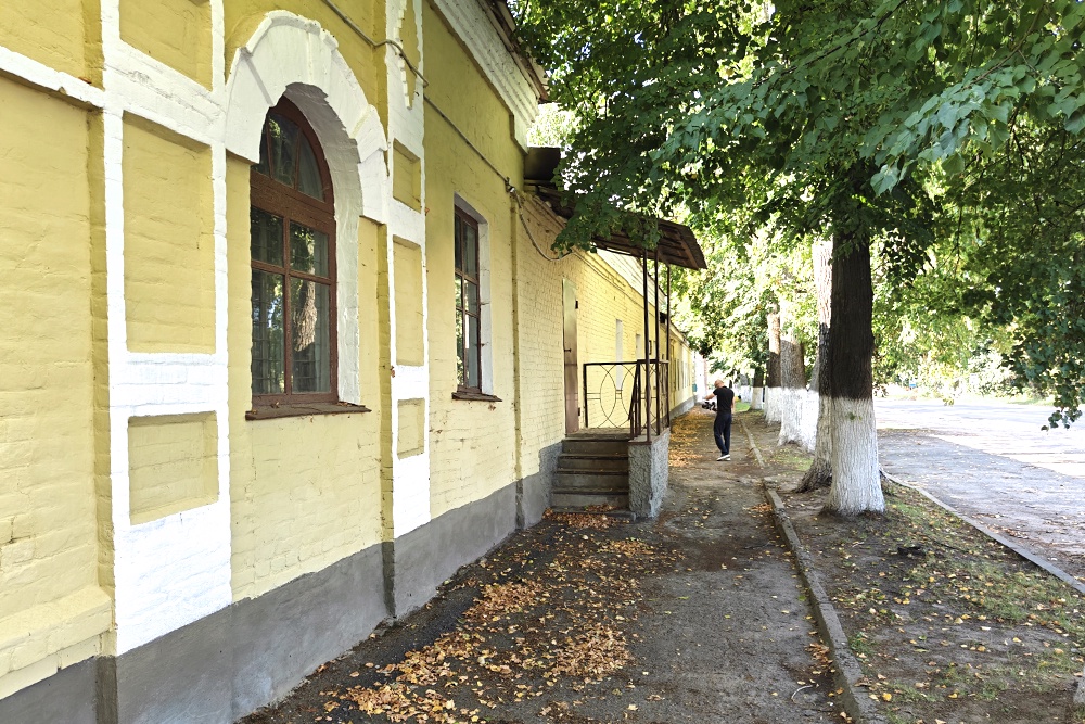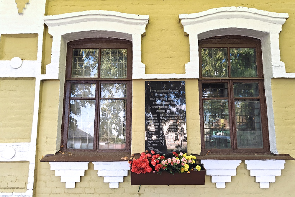 Заведующая Рыльским краеведческим музеем Татьяна Рыкова ведет нас к одноэтажному продолговатому зданию с массивными воротами и решетками на окнах - фашисты здесь когда-то обустроили тюрьму. На фасаде табличка - 22 имени. Кто они? Льговские подпольщики.