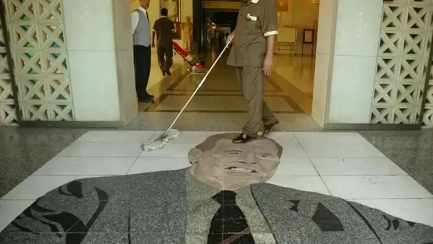 Когда в 2003 году американские войска захватили Багдад, отель «Аль-Рашид» был занят как штаб-квартира коалиции. Среди первых приказов, отданных оккупационными властями, был приказ уничтожить мозаику Лейлы аль-Аттар. По свидетельствам очевидцев, это сделал лично Джордж Буш-младший, сын того самого президента, изображённого на полу. Он назвал мозаику «оскорблением для Америки».