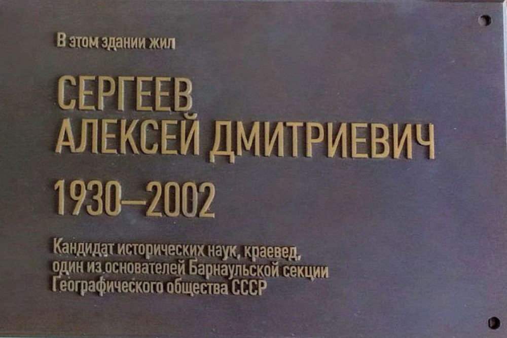 Барнаул иногда отличается странным отношением к памяти о знаменитых земляках. В краевом центре, например, не могут решить вопрос, который выеденного яйца не стоит. Пять лет назад руководство Русского географического общества прислало красивую бронзовую плашку с эмблемой РГО и текстом "В этом здании жил Сергеев Алексей Дмитриевич. 1930-2002. Кандидат географических наук, краевед, один из основателей Барнаульской секции Географического общества СССР". Стандартные плашки с фамилиями известных стране географов были отправлены по многим городам. Везде приняли с благодарностью. Кроме Барнаула. Городской администрации не понравилось слово "здание". Необходимо, указали чиновники, заменить на "дом", как им посоветовали некие эксперты. Не важно, что 99,999 процента барнаульцев не увидят принципиальной разницы между домом и зданием. В руководстве РГО оцепенели от барнаульской въедливости и развели руками: не хотите - ваше дело. Память об Алексее Сергееве хранится на столе одного из местных историков.