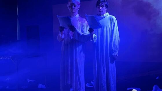Омский театр открыл сезон читок пьесой, рассказывающей неприглядную легенду строительства восьмого чуда света. Он - восьмое чудо света. Его минареты возвышаются над индийским городом Агра, а в его куполе из белого мрамора отражается палящее солнце, заставляя всё живое замирать в благоговейном восхищении его красотой. Это ослепительный Тадж-Махал - легендарный мавзолей, построенный во имя бессмертной любви падишахом Шахом-Джаханом для его жены Мумтаз-Махал, погибшей при родах. Прекрасный памятник великому чувству. Запятнанный кровью… Со многими красивыми творениями, созданными человеком, связаны жуткие истории. Тадж-Махал этой участи не избежал. По легенде Шах-Джахан был так поражён величием Тадж-Махала, что приказал отрубить руки 20 тысячам рабочих, которые его построили. А также архитектору Устад Исе, чтобы никогда больше в мире никто не построил что-то прекраснее Тадж-Махала. Но интересно, кому пришлось выполнять этот кровожадный приказ и что стало с этими людьми? Драматург индийского происхождения из Бруклина Раджив Джозеф представил свою версию происходившего в пьесе "Стражи Тадж-Махала". Именно этим произведением "Пятый театр" открыл новый сезон проекта "Читаем в "Пятом", который знакомит омского зрителя с современной драматургией. Эскиз пьесы представила главный режиссёр театра Людмила Исмайлова. - Вообще это такая распространенная тема в истории, не только индийская. И на Руси было такое, если вы помните. Даже у Тарковского в фильме показано, как иконописцев ослепляли, чтобы они больше так красиво не делали (имеется в виду фильм режиссёра Анрея Тарковского"Андрей Рублёв" (18+) - прим. ред.) . Это была какая-то странная тема в истории человечества: я не хочу, чтобы это повторили, - рассказала Людмила Исмайлова на обсуждении со зрителями после читки. Обычно, как пояснила режиссёр, для читки театр выбирает пьесы "только что из печи", однако "Стражи Тадж-Махала" (18+) была написана десять лет назад, и уже давно активно ставится в Москве и Санкт-Петербурге. Начинается всё довольно безобидно. У Тадж-Махала стоят два стражника в белых одеждах - Бабур (Дмитрий Исаенко) и Хумаюн (Михаил Синогин) - два закадычных друга. Бабур вечно летает в облаках: хочет увидеть императорский гарем, пленяется сиянием далёких звёзд и, как ребёнок, мечтает о полётах над землёй на аэроплане. Герой Дмитрия Исаенко постоянно опаздывает на пост, ни секунды не может стоять на месте молча, что стражам, кстати, строго запрещено. А ещё он страстно желает обернуться и посмотреть на Тадж-Махал, а это карается законом: по велению Шаха-Джахана, ни одна живая душа не должна видеть мавзолей, пока он не достроен. Хумаюн же совсем не похож на своего лучшего друга. Он сын большого начальника, отец для него - и царь, и бог. Неповиновение для него - неприемлемо, а все его мечты ограничиваются лишь усердной службой падишаху: какие ему полёты к звёздам. Он постоянно спорит, как старший брат, с Бабуром, пытаясь наставить того на путь истинный. И если для романтика Бабура мир - это одно большое огромное чудо, которые хочется изучать (у него много планов и интересов), то для Хумаюна весь мир сосредоточен на своём долге. Так спорили названные братья о том, как правильно на свете жить, пока Хумаюн не проболтался Бабуру, что падишах приказал отрубить руки всем, кто строил Тадж-Махал. Оба уже мысле